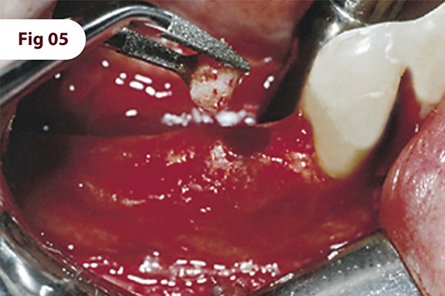 Remoção de um bloco ósseo do local regenerado, no qual será instalado um implante.