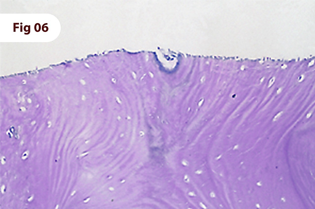 Remoção da membrana, após cinco meses, com a regeneração completa do defeito. Os tecidos tomaram exatamente a forma da membrana evidenciando o efeito de atração celular da membrana.